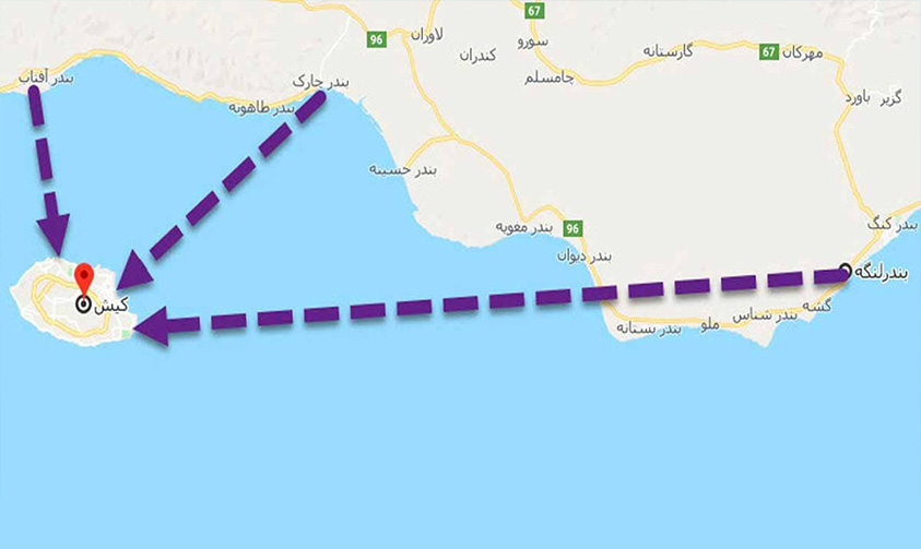 بندرچارک،بندر لنگه،بندرآفتاب واقع شده در استان هرمزگان مسیرهایی هستند که شما را زودتر به کیش می رسانند.